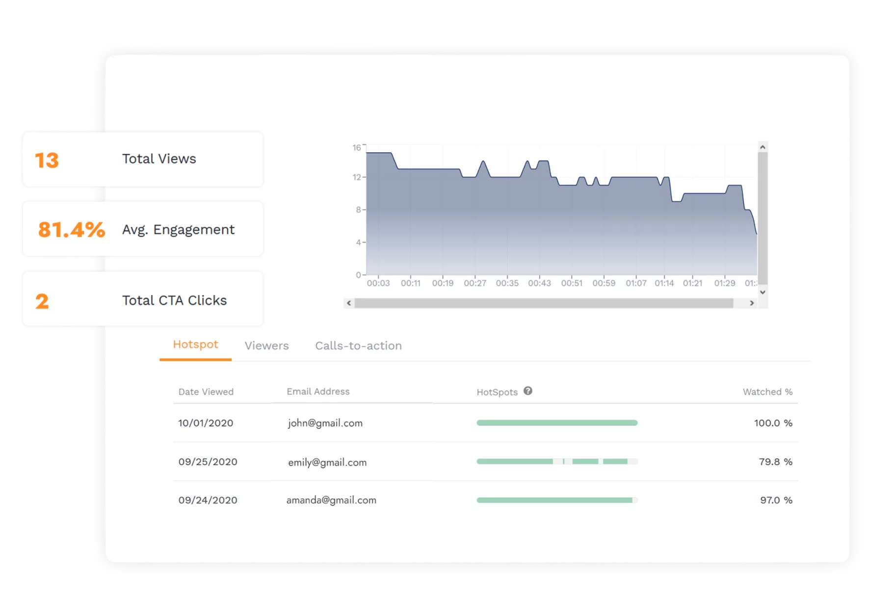 Detailed Analytics: See when prospects have watched your video, how long they watched, along with other engagement metrics.